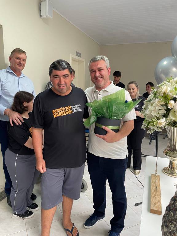 Na ocasião, o companheiro Agnaldo Pereira também foi destaque ao receber um agradecimento especial da APAE, por meio de uma carta e de uma cesta de presentes, pela generosa doação do projeto de elaboração da planta de engenharia do terceiro piso. Este trabalho foi essencial para a concretização da ampliação da estrutura da APAE, demonstrando o compromisso e a solidariedade de nossos membros.