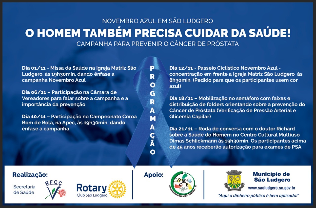 Em parceria com a Rede Feminina de Combate ao Cancer e Secretaria da Saude estaremos durante o mês de novembro a frente do Novembro Azul