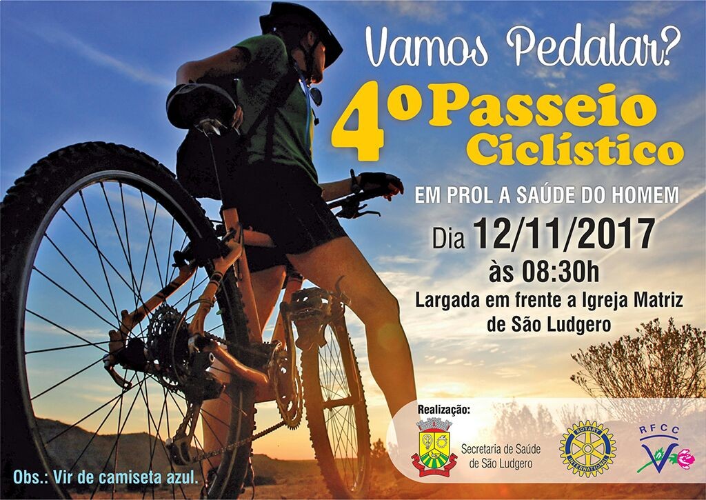 Neste dia o Rotary Club de São Ludgero fará um passeio ciclístico entre famílias pela cidade, com faixas e cartazes, informando a importância do exame preventivo do cancer de prostata